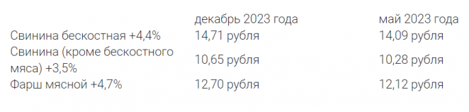 Отметим, что вопреки заявлению автора ролика о том, что цены на свинину «не изменились с весны 2023 года» официальные данные Белстата говорят о другом: цены на свинину за полгода — с мая по декабрь 2023 года — подросли на 3,5-4,7%.