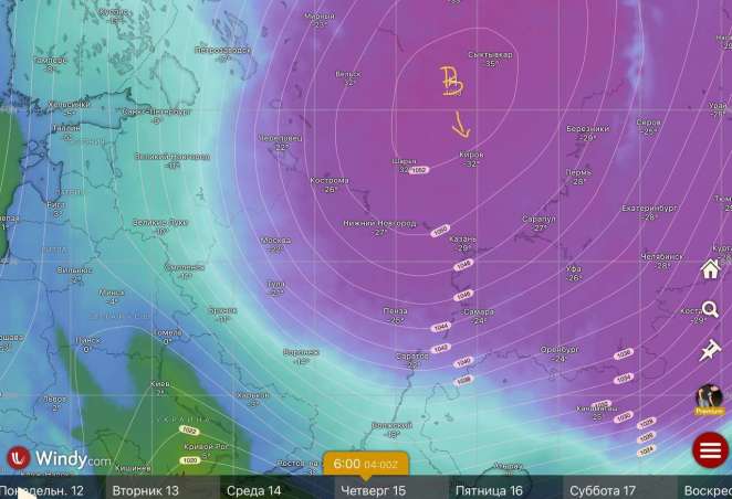 «Мощнецкий конечно антициклон опускается из Арктики через европейскую часть России. Максимальное атмосферное давление в его центре ожидается 1058 гПа, когда его центр будет в районе города Казань», — предупредили специалисты.