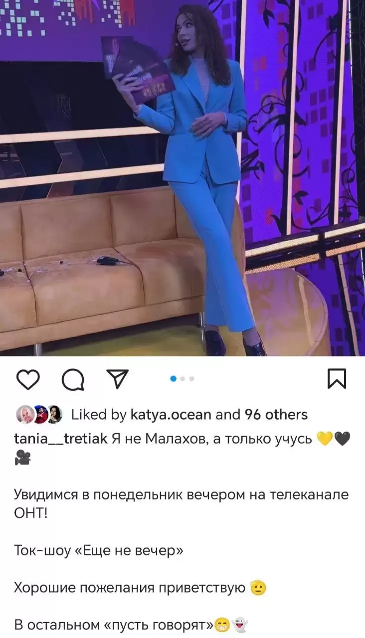 Большую часть шоу вела Михаловская. У Татьяны Третяк лишь изредка получалось вставить пару слов. Камера ее тоже не часто показывала крупным планом. Было заметно, что звезда ГУБОПиКа к обычной студии не привыкла. Она написала в инстаграме: «Я не Малахов, я только учусь. Добрые пожелания приветствую. В остальном «пусть говорят».