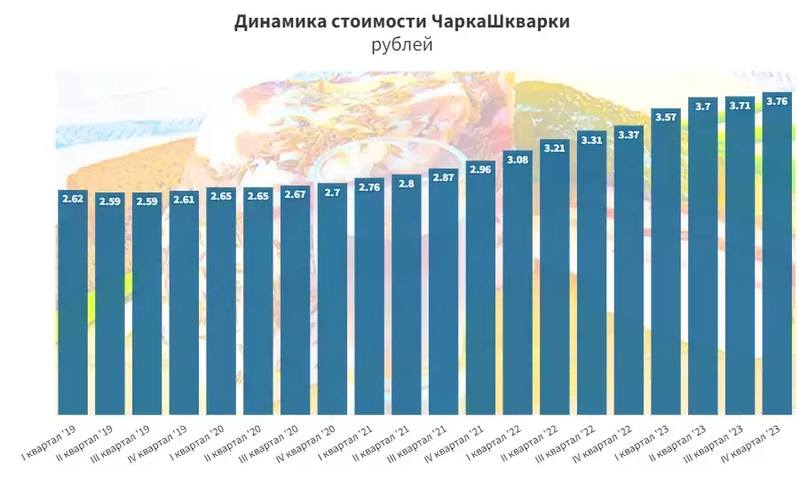Если рассматривать последний квартал 2023 года, то мы увидим, что свинина выросла в цене на 1,8%, а водка — всего на 0,8%. Соответственно, стоимость одной ЧШ выросла всего на 1,2%. Мы наглядно видим, что ценовой контроль действительно работает, и, если не знать подтекста происходящего, кажется, что все великолепно.