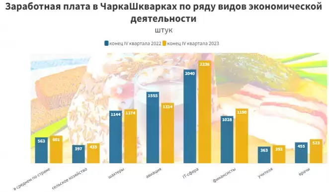 Как всегда, аутсайдерами по заработным платам оказались врачи — 523 чаркошкварки, аграрии — 433 чаркошкварки и учителя — 392 чаркошкварки. При этом средняя заработная плата в стране поднялась с 536 в декабре 2022 году до 601— в декабре 2023-го.
