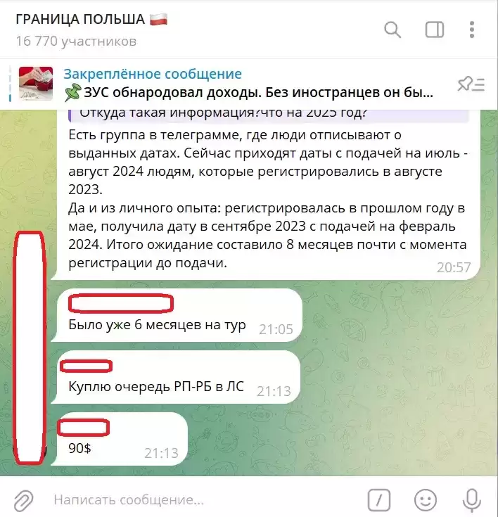 Пользователи чатов делятся информацией, что на днях покупали место за 150 злотых (около 120 рублей).