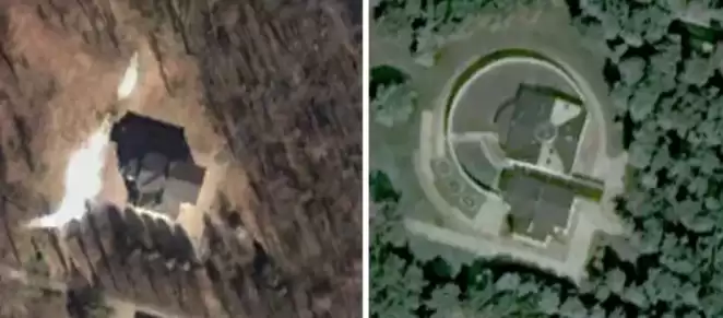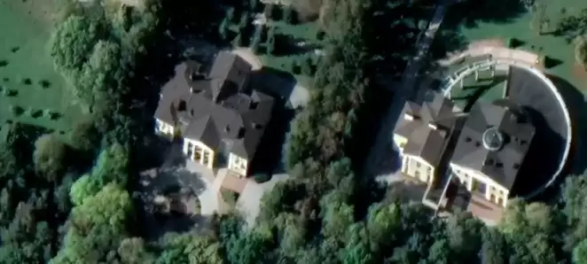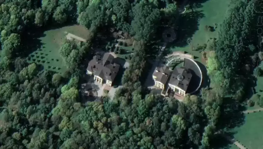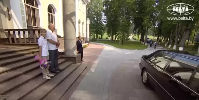 В 2015 году нам показали, как Лукашенко с сыном Николаем на крыльце резиденции встречал премьер-министра Пакистана Наваза Шарифа. Это крыльцо находится под большим стеклянным навесом, под который могут заезжать кортежи гостей. Опознать его по спутниковым снимкам легко — оно является продолжением вставки между двумя частями одного здания, новой и старой. На кадрах мы видим только часть стены новой части.