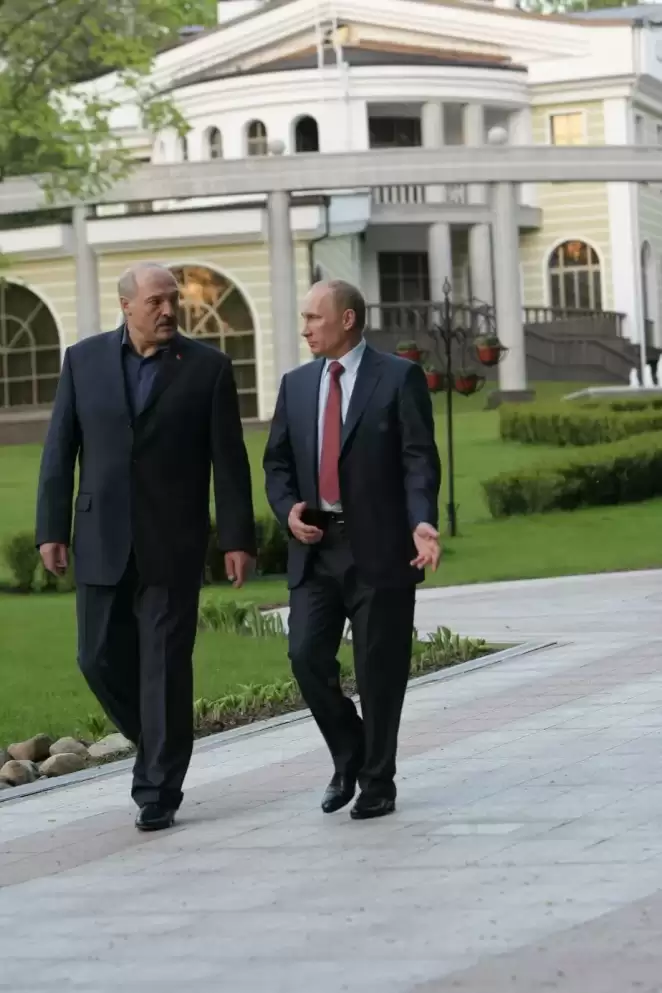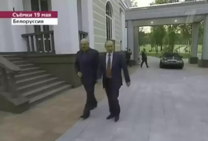 Лукашенко и Путин на фоне здания резиденции «Озерный». Фото: интернет-портал Правительства России