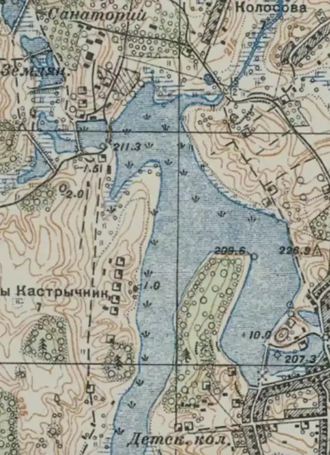 Бывшее имение на довоенной 250-метровой карте РККА подписано как санаторий, но в самом городке существует некая детская колония. Это вносит определенную путаницу в историю дворца Тышкевичей