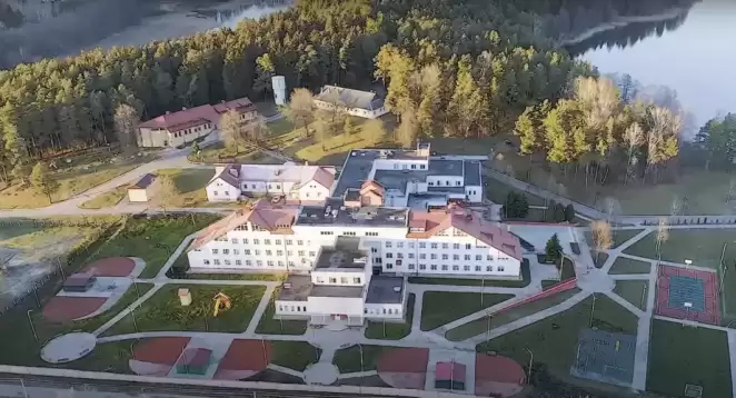 Республиканская детская больница медицинской реабилитации, которая строилась с 1970-х до 1990-х годов на месте, где до войны была детская колония. Скриншот из видео