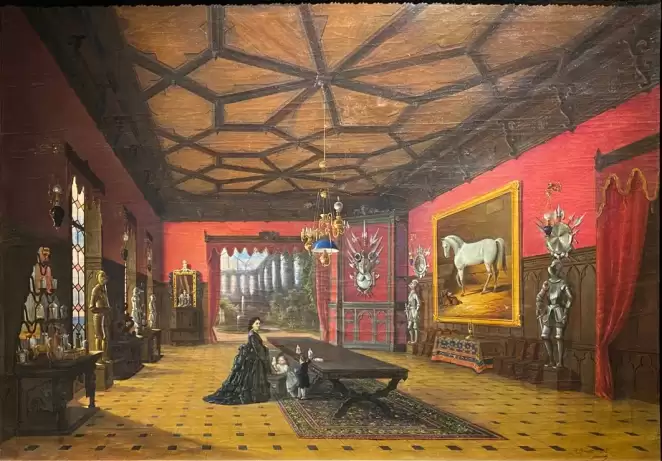 Интерьеры зала Острошицкого дворца в английском стиле. Альберт Жамет, 1872. Национальный художественный музей Литвы