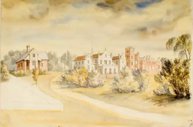 Можно заметить, что у старого флигеля, попадающего в кадр, сохранились даже угловые столбы, которые когда-то поддерживали крышу. Это подтверждает, что сегодняшние здания являются теми же, которые видел когда-то Наполеон Орда (а не были построены на старых фундаментах).