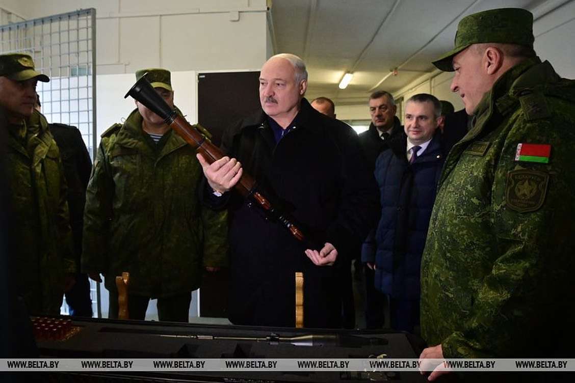 Александр Лукашенко с гранатометом, подаренным ему при посещении артиллерийской базы вооружения в Гомеле. 17 ноября 2023 года. Фото: БЕЛТА