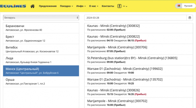Автобусы «Эколайнс», которые едут из Литвы или в Литву, также либо не опаздывают, либо задерживаются максимум на два часа.