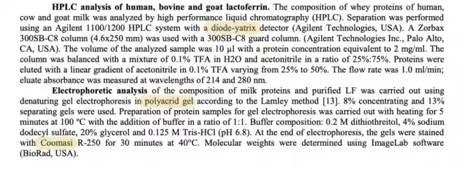 «Есть правило, что все данные, которые получили, должны быть в части Results. Рецензенты серьезных статей такое сразу замечают и требуют исправить. А тут получается, что они выделяли лактоферрин, показали использование различных методов, это описали, но потом пускаются в какие-то дополнительные размышления, которые почти не связаны с их работой и, похоже, базируются на литературных данных», — отмечает собеседник.