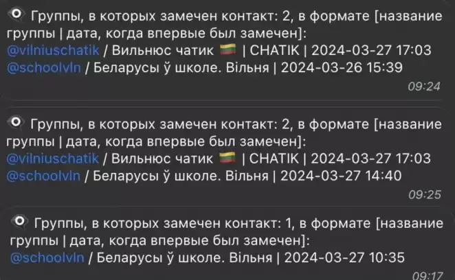 Обращает внимание также то, что все идентифицированные нами получатели сообщений — эмигранты последней волны, приехавшие в Литву в последние годы.
