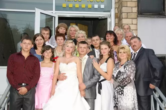 Марина Василевская (справа от жениха) на свадьбе старшего брата Александра в 2010 году. Фото из соцсетей