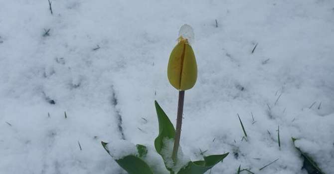 Если вы думали сбежать от снега в Минскую область, не выйдет: там весенние цветы засыпало почти с горкой.