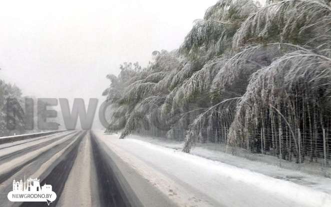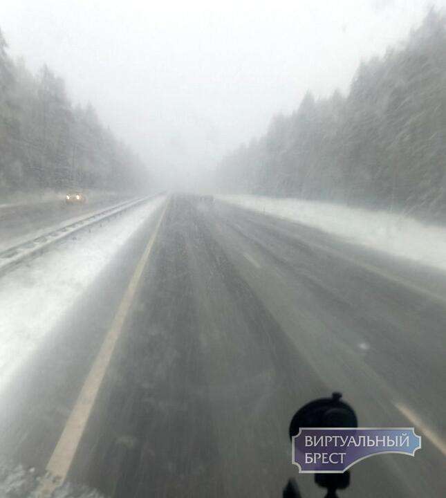 Зима «началась» где-то в районе Щучина. «А дальше снегопад только усиливался. В какой-то момент он превратился в настоящую метель», — рассказал читатель издания.