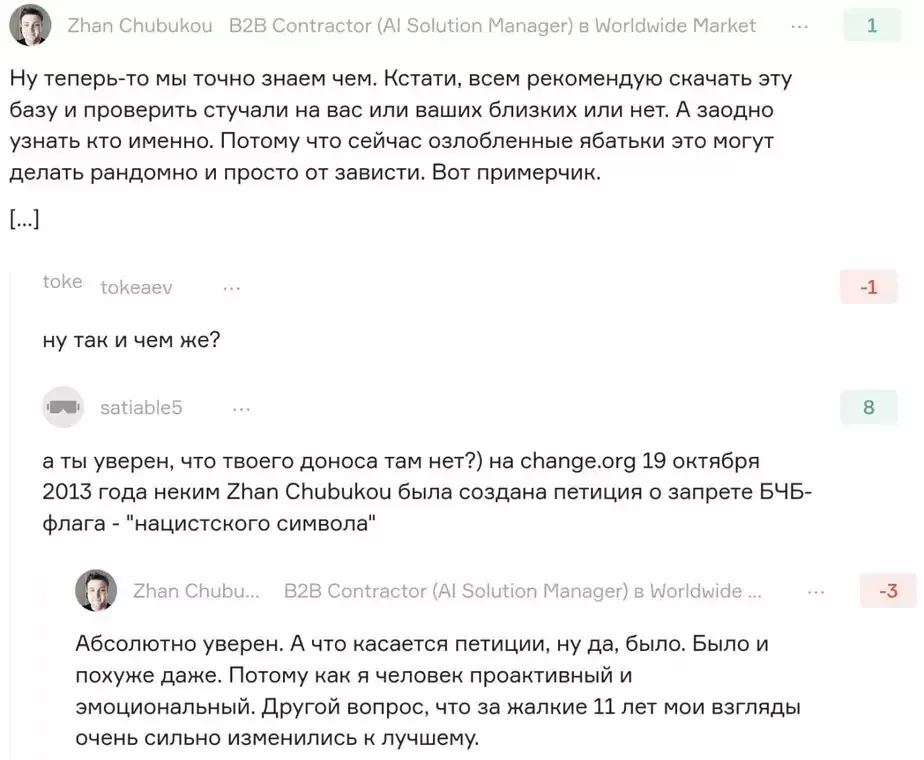«Насчет петиции… Ну да, было. Было и похуже даже. Потому как я человек проактивный и эмоциональный. Другой вопрос, что за эти жалкие 11 лет мои взгляды очень сильно изменились к лучшему», — ответил он одному из пользователей, который копнул его прошлое.