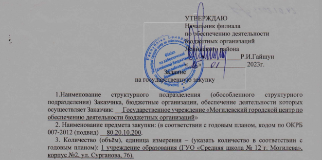 Задание на закупку питания для частной школы «Конкорд», которая вдруг стала корпусом № 2 Могилевской школы № 12. Фото: «Бюро»