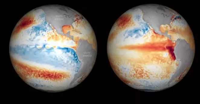 Противоположность ему, Ла-Нинья имеет характеристики низких температур в экваториальной части Тихого океана и напрямую связан с наводнениями и засухами по всей планете.