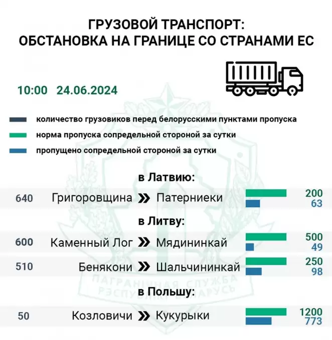 Так, по состоянию на 24 июня, через «Козловичи» проехало 773 фуры в одну сторону.