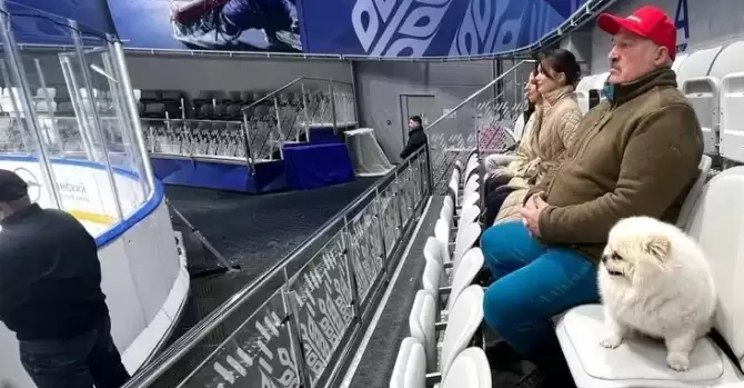 Лукашенко со шпицем на хоккее, 2023 год. Фото: телеграм-канал «Пул первого»