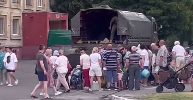 Очередь за водой в Мозыре, который 14 июля попал в ураган, Гомельская область, 15 июля 2024. Фото: mlife. mozyr / Instagram