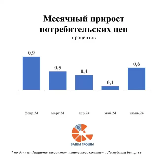 Отдельно за июнь цены выросли на 0,6%. Для сравнения, в мае инфляция за месяц составила 0,1%. Июньский месячный прирост оказался значительно выше майского.