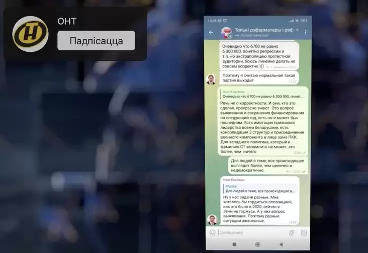 Случайный скриншот, опубликованный в эфире ОНТ, позволяет заглянуть в голову пропагандиста и отследить нарративы лукашистов, рассчитанные на оппозицию.