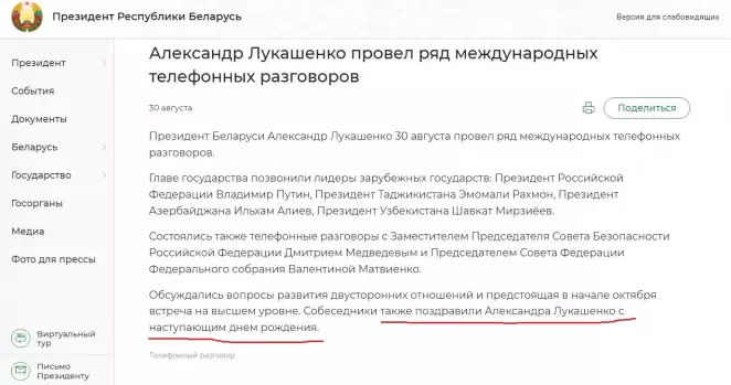 После этого пресс-служба правителя выдала странное сообщение о том, что тот «провел ряд международных телефонных разговоров». Только в самом его конце можно узнать, что автократы из постсоветского пространства поздравили Лукашенко с днем рождения.