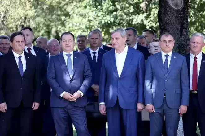 Шакутин — единственный на снимке без галстука. Фото пресс-службы Совмина летом 2024 года