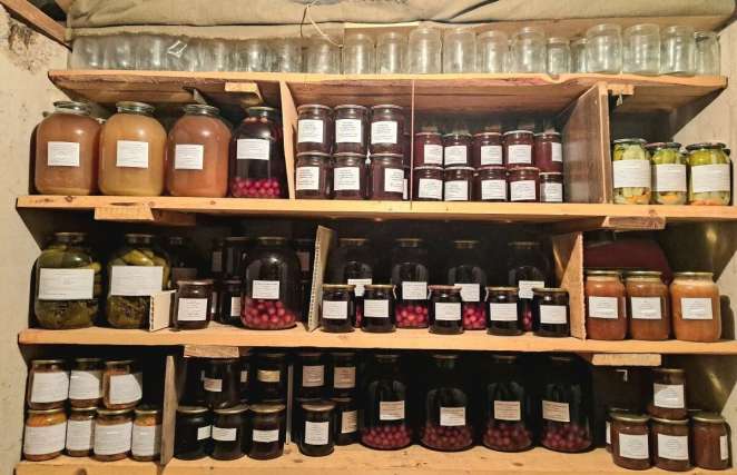 В этом году уже закатали 36 пол-литровых баночек различного варенья и еще 20 литровых банок огурцов. Первыми у нас съедаются огурцы, компоты и варенье из черной смородины. Овощные салаты и лечо стоят подольше.