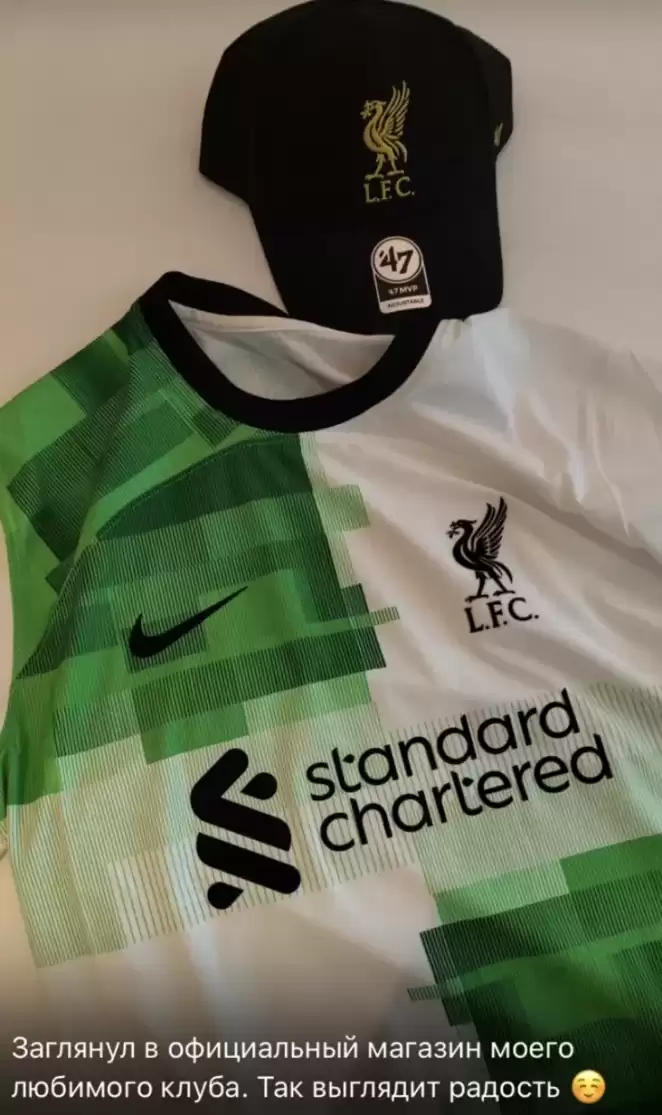 Но максимум радостных эмоций он испытал от посещения официального магазина любимого футбольного клуба — «Ливерпуля». Там он немного пошопился и приобрел себе брендированную майку и кепку.