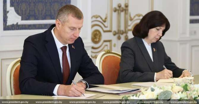 Глава Администрации Лукашенко Дмитрий Крутой и председатель Совета Республики Наталья Кочанова во время совещания у Александра Лукашенко, 10 сентября 2024 года. Фото: пресс-служба Лукашенко