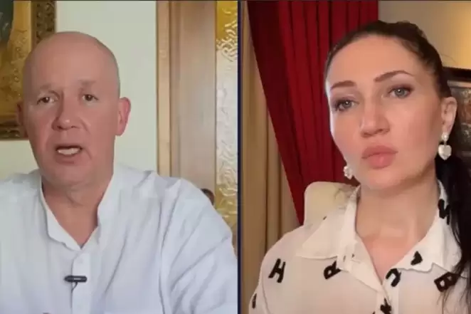 Валерий Цепкало и Алеся Бацман во время интервью. Скрин видео