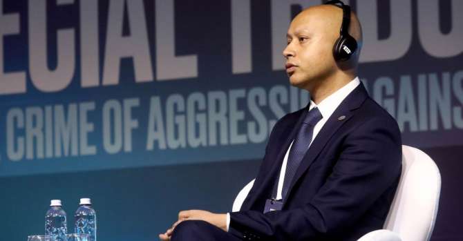 Адвокат и адвокат Аариф Абрахам принимает участие в Специальном трибунале по делу о преступлении агрессии против Украины. Киев, Украина. 21 августа 2023 года. Фото: Volodymyr Tarasov / Ukrinform / Future Publishing / Getty Images