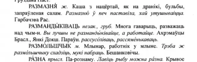 Встречается слово и в Словаре языка белорусского писателя Лукаша Колюги, который родился на территории сегодняшнего Дзержинского района. Отмечу, что и мне известно значение этого слова от предков, которые родились в этих местах. У Колюги это слово означает «заниматься пустой болтовней».