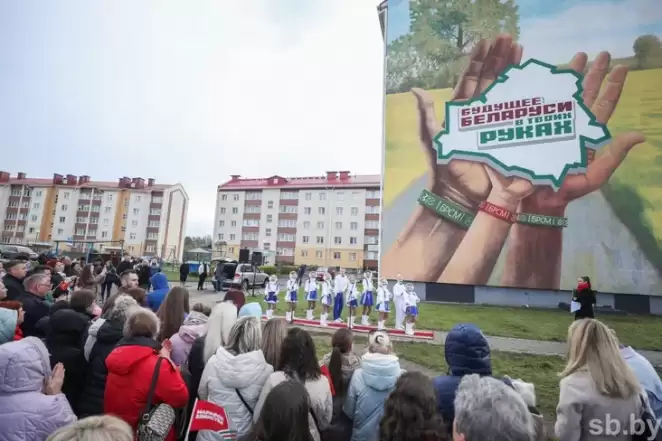 Помимо Коли Лукашенко, к горожанам приехала космическая туристка Марина Василевская, певец Александр Солодуха, исполнители «Баллады о диктаторе». А городу подарили ура-патриотический мурал от БРСМ, пишет НН.