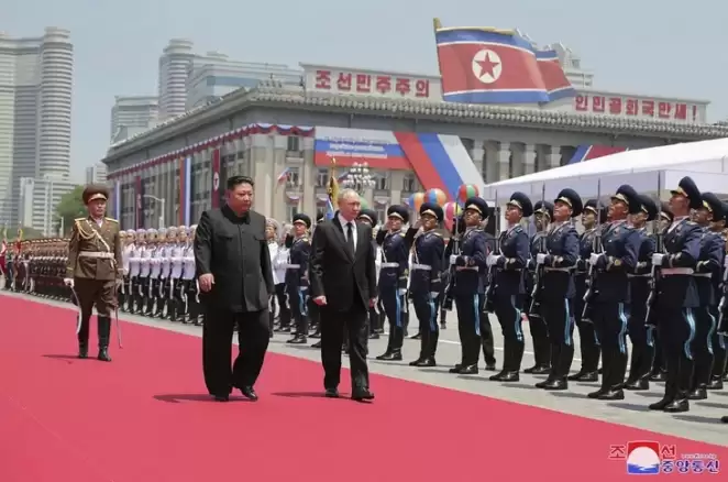 Владимир Путин с северокорейским лидером Ким Чен Ыном во время визита в КНДР в июне 2024 года. Фото: Korean Central News Agency / Korea News Service via AP