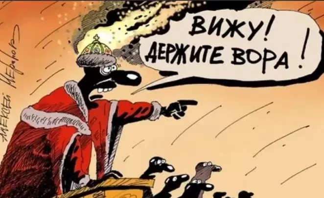 Шапка Мономаха буквально полыхает синим пламенем, но Путина это не смущает, и он продолжает твердить про некую «интервенцию против России». Как в свое время Гитлер обосновывал вторжения в другие государства тем, что они якобы угрожали безопасности Германии.