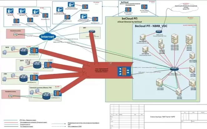 Схема структуры внутренней сети Национального банка Беларуси. Источник: DumpForums