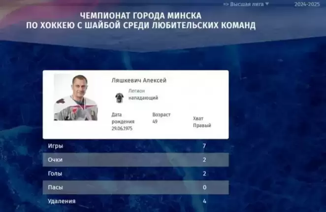 Скриншот сайта hockey.sportclub.by/26 / с информацией про Ляшкевича