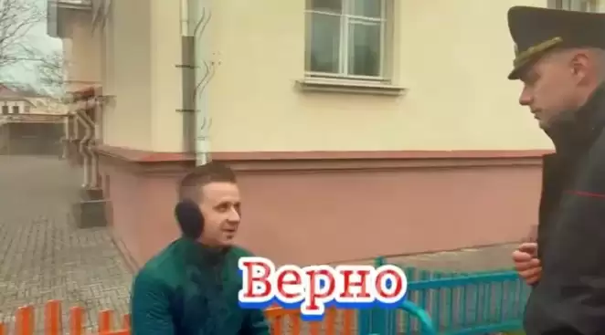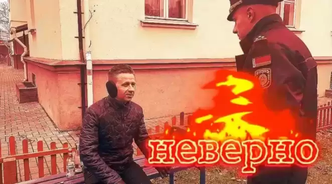 После этого милиционер пытается задержать человека, а тот говорит, что «всё снимет на телефон», и достает смартфон. После этого милиционер начинает истерить и пытается закрыть телефон руками, а на экране в очередной раз появляется надпись «Неверно».
