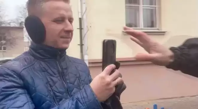 Павел Лукашевич делает вид, что хочет закрыть камеру Базыленко. Скриншот из видео