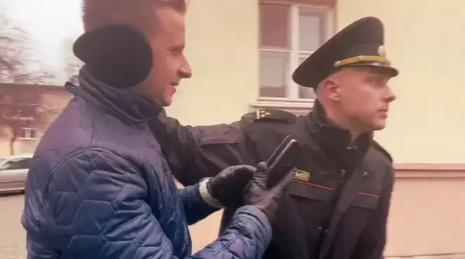 Павел Лукашевич тянет Максима Базыленко в отделение. Скриншот из видео
