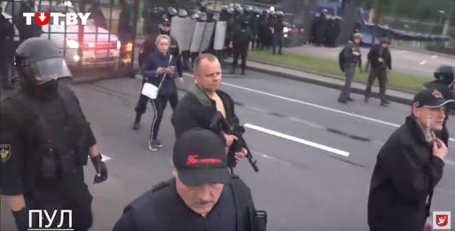 Также блондинка, похожая на личного врача Лукашенко, шла следом за ним, когда тот вышел к силовикам на минский проспект Победителей с автоматом в руках 23 августа 2020 года.
