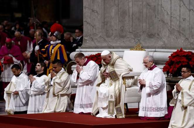 Папа Франциск служит рождественскую мессу в соборе Святого Петра в Ватикане, 24 декабря 2024 года. Фото: Reuters