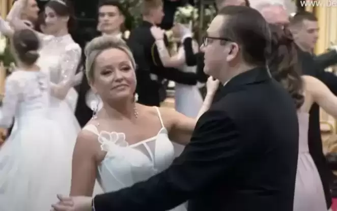 Басков и Елена Казак на балу. Скриншот видео БелТА