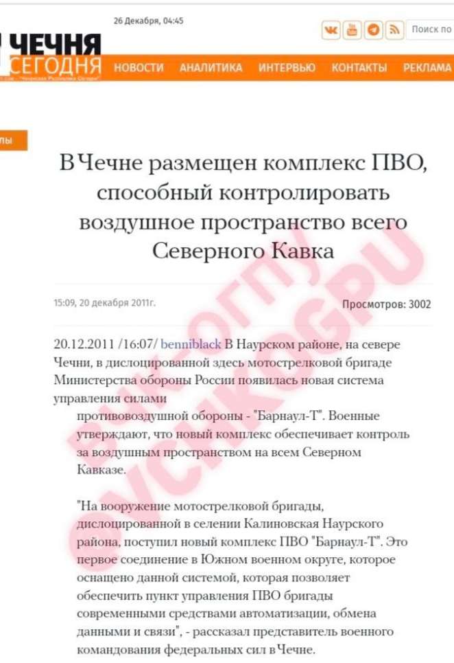 В материале говорилось, что в дислоцированной в Наурском районе мотострелковой бригаде Министерства обороны России появилась новая на тот момент система управления силами противовоздушной обороны - Барнаул-Т.