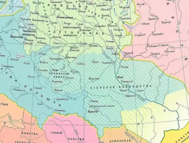 «Волынь сказала: мы переходим под польского короля, только заберем с собой Киев. Вся Русь по сути переходила из Литвы в Польшу. Литовцы, а они были в более слабой позиции, очень обиделись, начали требовать компенсацию. Поэтому польский король отрезал северную часть Киевского княжества и отдал литовцам как компенсацию. Собственно так города Пинск, Гомель, Могилев, исторические земли Киевского княжества, оказались в Беларуси. Потому что это все исторически наши земли», — говорит Кулеба.