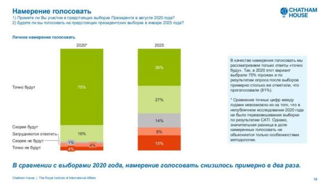 «Белорусская инициатива» института Chatham House представила 17 января результаты исследования о восприятии беларусами избирательной кампании. Опросы проводили с 9 декабря 2024 года по 15 января 2025-го.