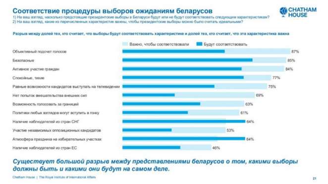 Результаты социологического исследования «Беларусской инициативы» института Chatham House относительно ожиданий от избирательной кампании и ситуации в Беларуси. Скриншот: Belaruspolls.org